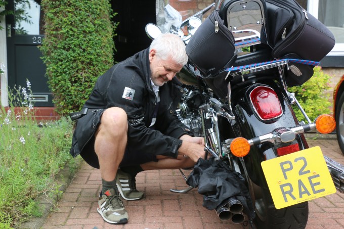 One huge benefit was the ease of removing the things. We needed to take the bike into central London next day to meet an old friend, and London’s solo motorcycle parking bays are hard to squeeze into at the best of times. We found one bay with one vacant slot, and it fitted the unadorned Valkyrie like a glove. Nice when things work out.