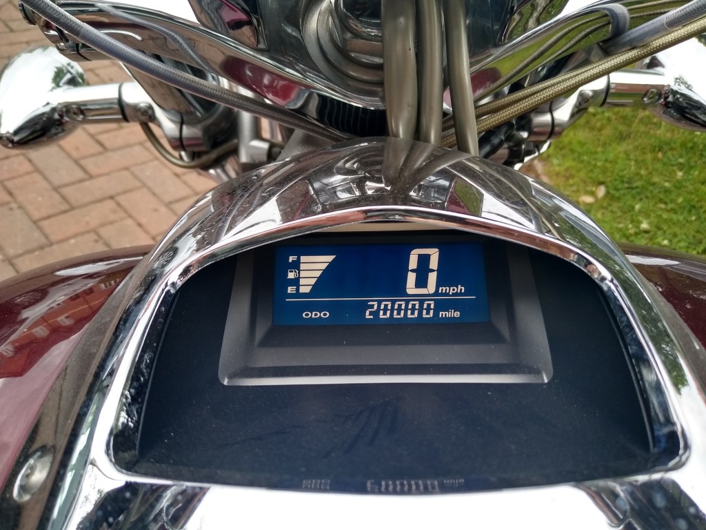 The Rune couldn’t be more different. Take the unburstable (and low-maintenance, by contrast) 1800 Gold Wing engine, tweak it a little, and dress it in one of the funkiest outfits ever to grace a production motorcycle, and you have a unique bike. It weighs 368 kg dry, 398 kg wet, and is fully eight feet long. It has presence. I was reminded of its considerable heft when I had to manoeuvre it into our newly prepared garage, which is approached by a short and slightly downward sloping driveway. Riding it in nose-first was not an option: no way was I ever going to reverse it out again. The trick is to ride it down the drive, turn hard right on to our neighbour’s drive, and perform a four-point turn to reverse it the last few metres into the garage. It takes all the strength in my shoulders and legs to keep the beast upright in those manoeuvres.