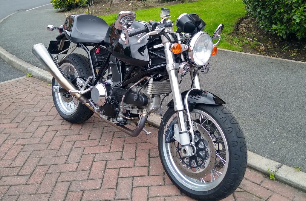 Back at the dealership, I had to choose between the yellow, black and red. The black spoke to me. The brand new bike on the showroom floor had been fitted with a Termignoni racing two-into-one exhaust that was lighter than the original, looked superb and sounded awesome. The salesman asked whether I wanted it with or without the Termi system, which he said cost £1,200. That was a helluva price for an exhaust system 15 years ago (and still is today, in my opinion), but the salesman spoke to the manager and they offered it to me for £300. I guess they didn’t want the hassle of talking it off and re-installing the original. Anyway, I know a bargain when I see one, and the black Ducati with racing exhaust was mine.