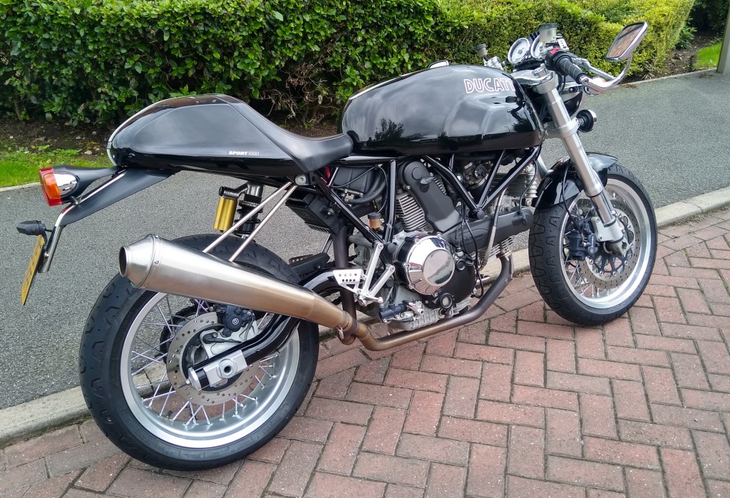 That was early February 2008. I rode the bike whenever the fancy took me and the weather was right. I soon tired, literally, of the original low clip-ons and replaced them with higher Ducati bars, still clip-ons but giving a slightly less stooped riding stance. I had two other bikes at that time, a Valkyrie and the Suzuki TL1000S, and a car, and work took me overseas, and then I got engaged. So the single-seat Ducati got used less frequently than it perhaps deserved. It was a joy to ride, though: fast, responsive, tracking true through the twisties, looking fabulous and sounding like a motorbike should! It was an elemental bike, stripped to the basics: a 1,000cc V-twin engine, two wheels, a tank and a saddle. I thought of it as the sort of bike Ogri would ride of he ever lost his Vincent.